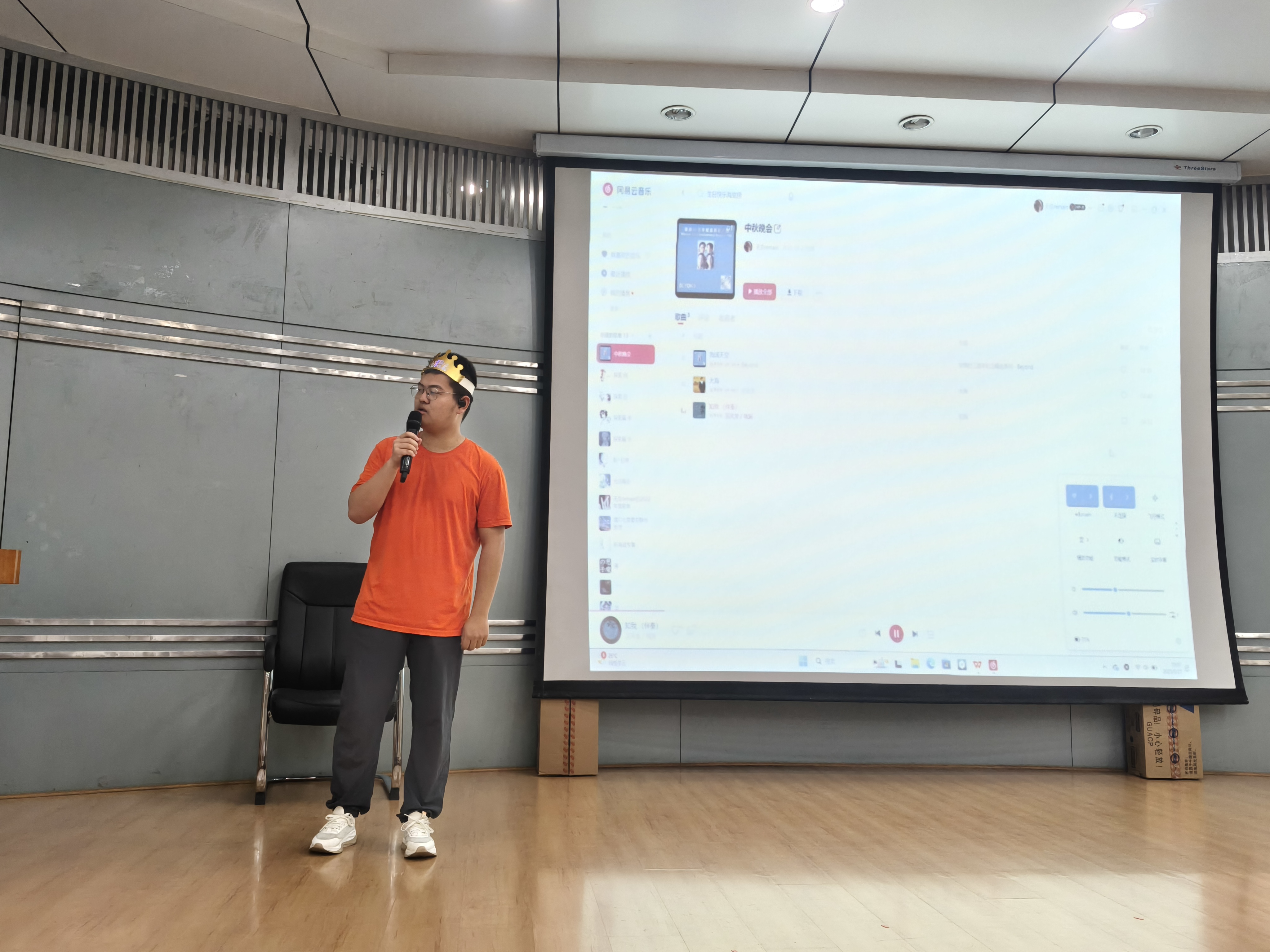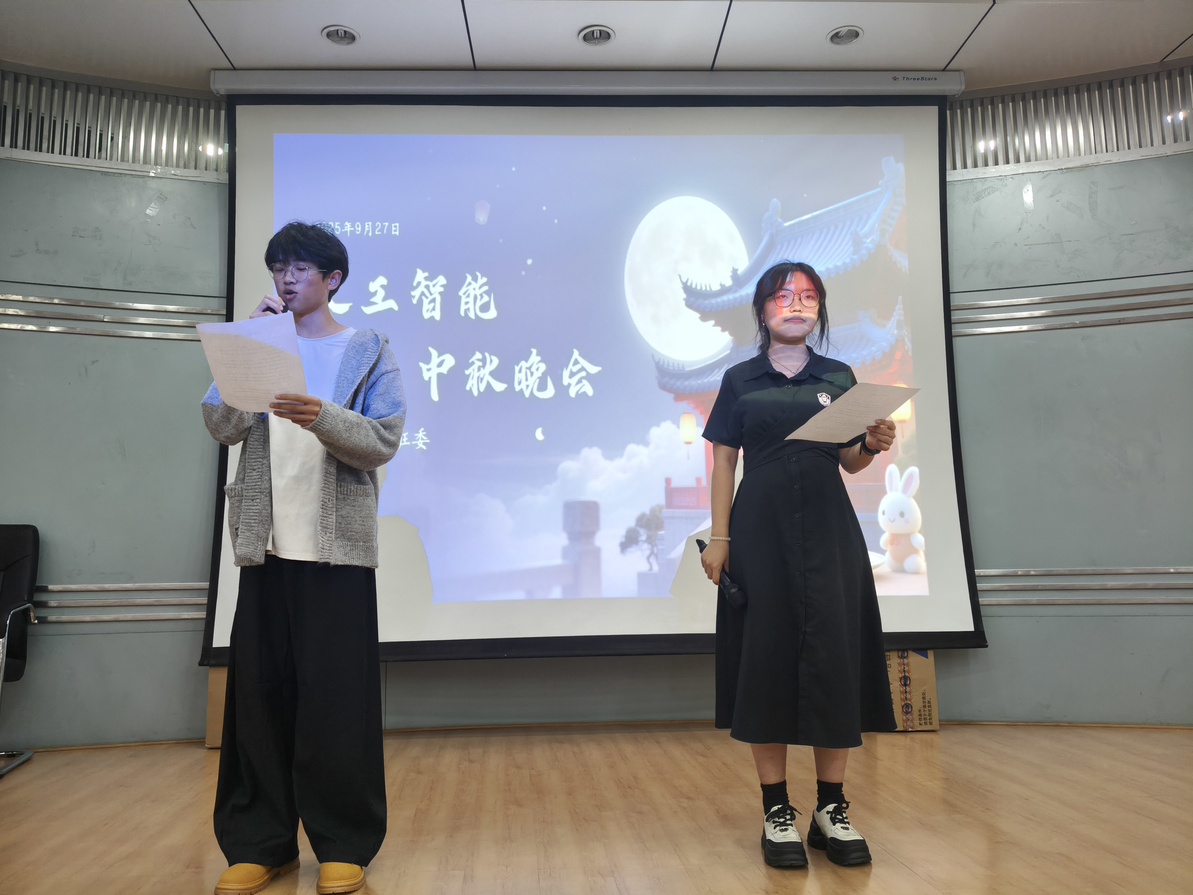 为提高班集体凝聚力,值此国庆、中秋双节来临之际,2025级人工智能本科班于9月27日在西区活动中心二层报告厅举行了中秋晚会。晚会由宋运桥、董诗语两位同学主持,班主任邹欣妍老师出席了本次活动。