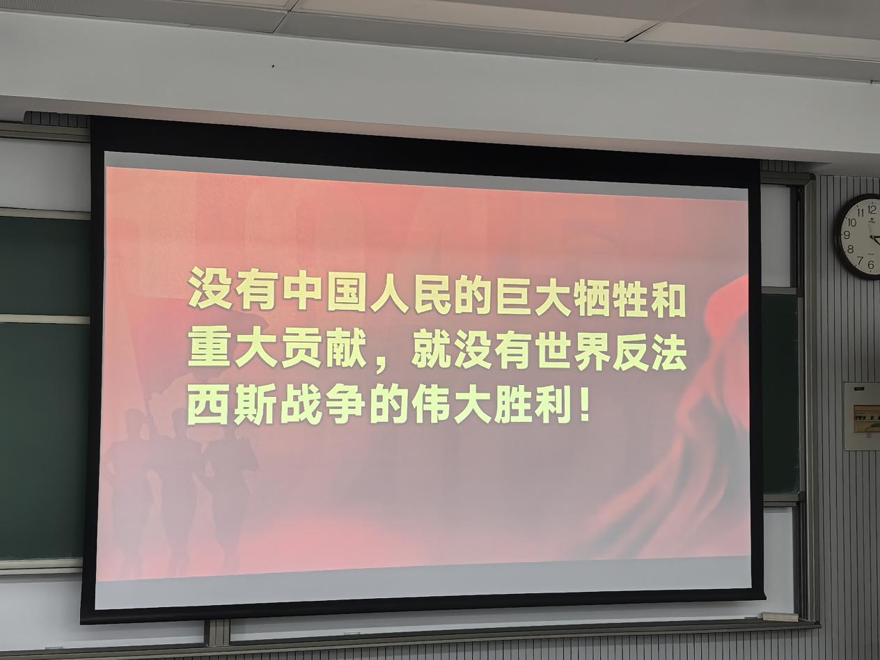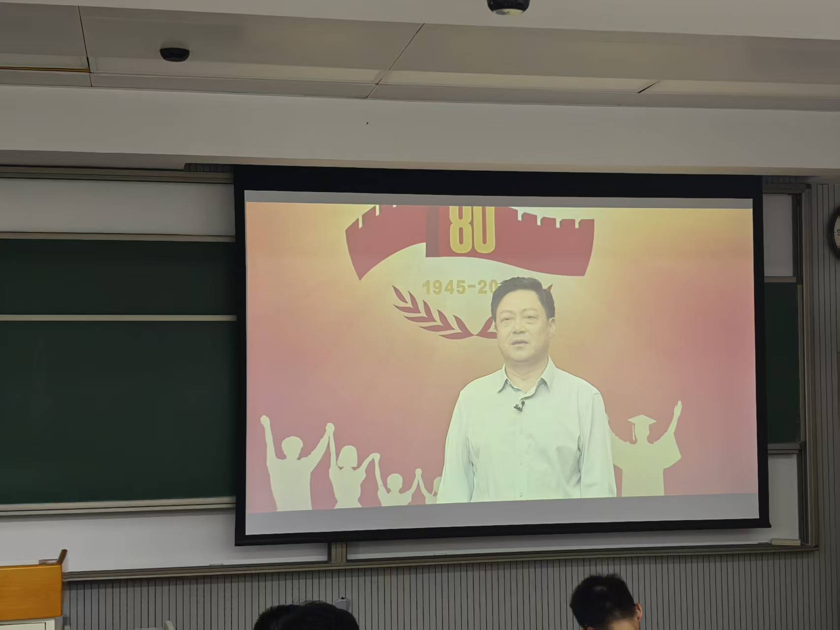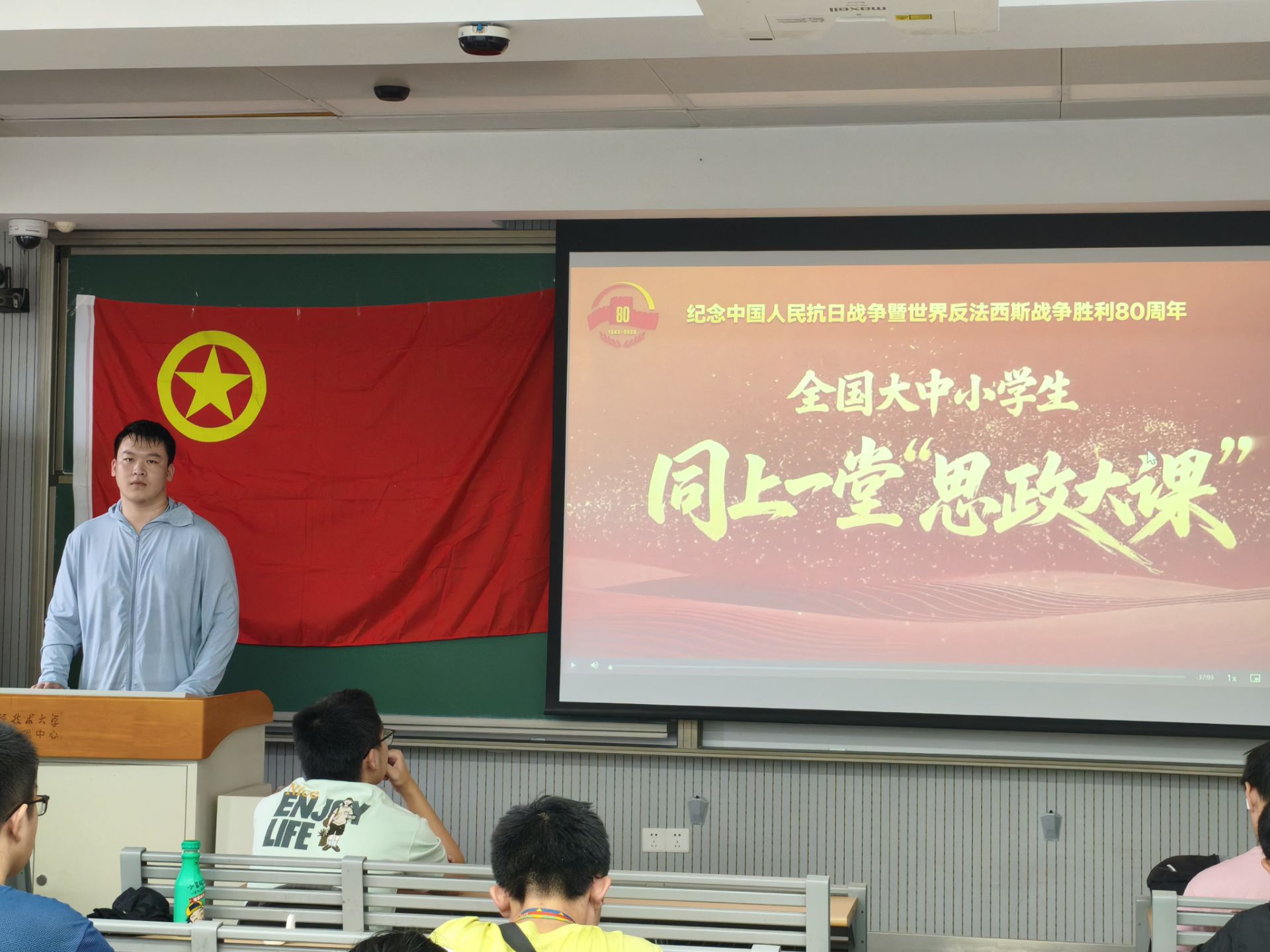 为纪念中国人民抗日战争暨世界反法西斯战争胜利80周年,引导同学们厚植家国情怀、坚定理想信念,将爱国情、强国志融入青春奋斗征程,9月18日下午4时,2024级人工智能本科班团支部在第三教学楼3A304组织全体同学集中收看由团中央统筹推进的全国大学生“同上一堂思政大课”。本次课程聚焦“弘扬伟大抗战精神,做光荣自豪中国人”主题中的“大学篇:大国担当”篇章,由团支书王永杰主持。