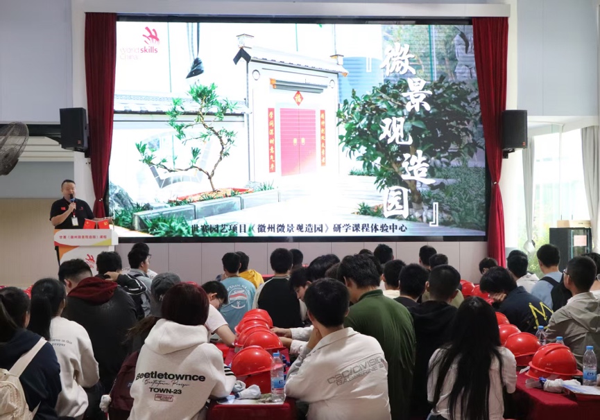 活动伊始,主办方对同学们的到来表示热烈欢迎,并介绍了我国在世界技能大赛中取得的辉煌成就,激发了同学们的爱国热情与技能报国之志。随后,课程核心任务正式发布:各小组需在限定时间内,根据设计图纸,运用提供的景观材料,协作完成一座徽州园林风格的微景观作品。