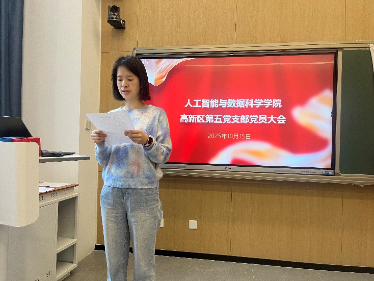 为进一步加强基层党组织建设,推进党建工作与科研育人深度融合,经人工智能与数据科学学院党总支批准,人工智能与数据科学学院高新区第五党支部于2025年10月15日正式召开党员大会,选举产生首届党支部委员会,标志着该支部正式成立并进入规范运行阶段。