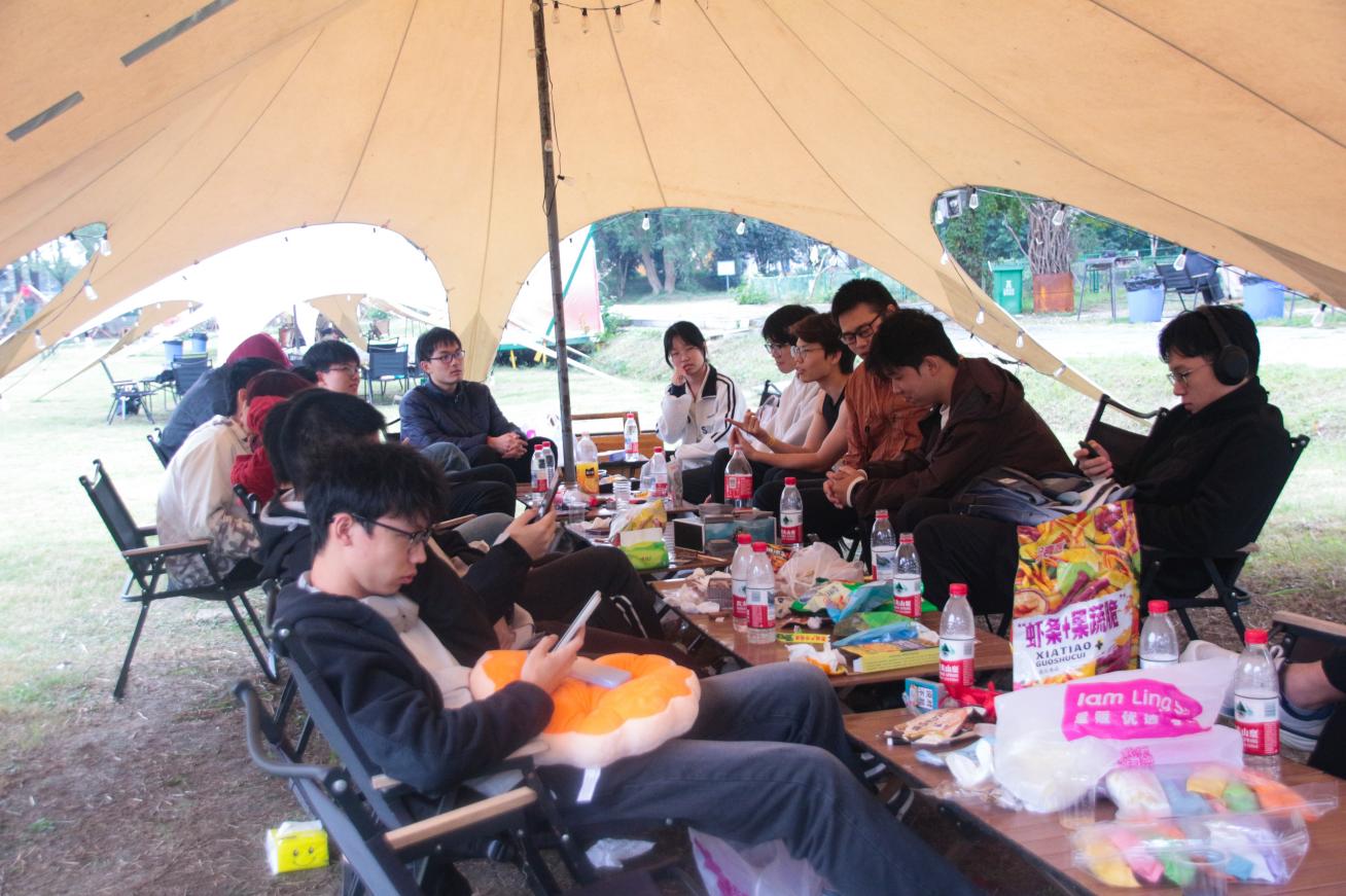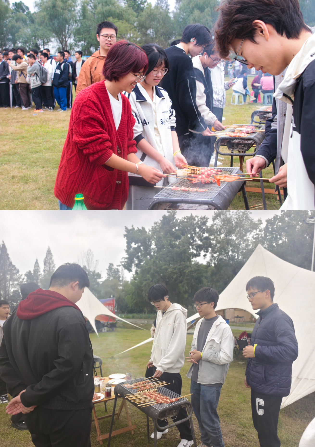 中午,队伍在指定区域进行野餐。自助烧烤的炊烟袅袅升起,同学们分工协作,有的负责烧烤,有的分发食物饮料,在美食与欢笑的交织中,气氛迅速升温。吴同学和孙同学提前采购的丰富物资保障了活动的顺利进行。野餐结束后,由林同学和何同学组织的桌游与破冰游戏环节将活动推向高潮。狼人杀、三国杀等桌游考验着逻辑与口才;歌曲接龙等游戏则引得笑声不断,有效打破了初识的拘谨,现场气氛热烈而融洽。