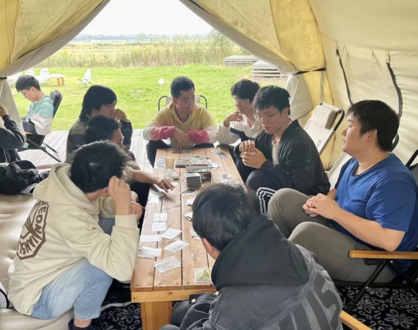烧烤结束后,班级组织了分组卡牌小游戏。同学们迅速组成游戏小队,展开了激烈又友好的比拼。游戏过程中,大家充分发挥智慧与默契,或策略布局,或灵活应变,现场不时响起阵阵掌声与欢呼声。通过卡牌游戏,不仅缓解了上午劳动的疲惫,更增进了同学之间的沟通与信任,进一步凝聚了班级向心力。