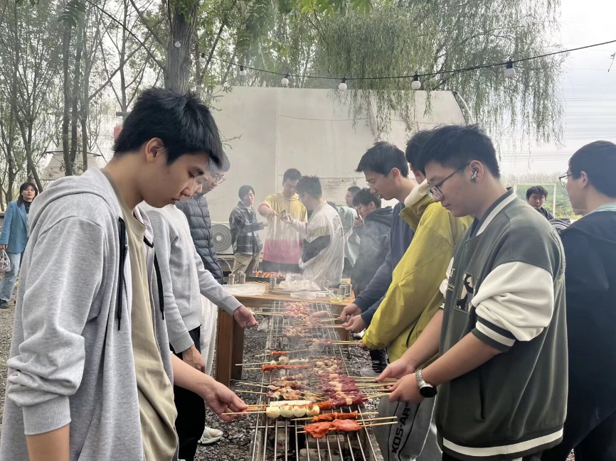 午后暖阳正好,烧烤团建活动如期开展。同学们分工明确、默契配合,有的专注调控炭火、掌握火候,有的则主动分享烤好的美食,现场洋溢着温馨和谐的氛围。烤架上,肉串、蔬菜、香肠等食材逐渐变得色泽诱人,滋滋作响的油脂散发着阵阵香气,大家边烤边吃、边聊边笑,尽情享受着自己动手的乐趣。