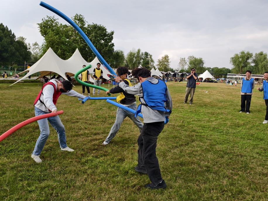 秋高气爽,阳光和煦。上午十一时二十分,参与活动的同学们准时在高新校区南门集合。后勤组的同学们已早早备好了充足的饮料和零食,为行程做好了充分保障。人员到齐后,大家满怀期待,共同乘车前往团建基地。经过约一小时的车程,团队顺利抵达。在开阔的草坪上,天幕已然支起,同学们放置好随身物品,稍事休整,便在专业团建教练的带领下,迅速进入了活动状态。几个简单而有趣的暖场小游戏,瞬间点燃了现场气氛,拉近了彼此的距离。