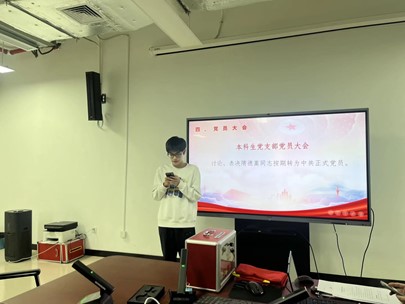 本科生党支部肖阳同志以“何以抉择”为主题作思想教育汇报,将青年成长与时代要求相结合,围绕理想与现实、个人与集体、传承与创新的抉择展开论述,展现了新时代青年党员坚定理想信念、高举理想主义旗帜的决心和以强国建设、民族复兴伟业为己任的担当。
