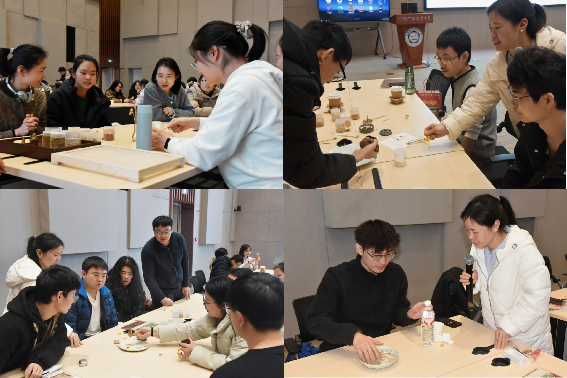 随后,师生在汪老师的带领下进入制香体验环节,大家分组分工协作完成篆香与线香制作。现场香气氤氲,大家在慢节奏的操作中感受专注与宁静,欢声笑语间满是对传统技艺的热爱。