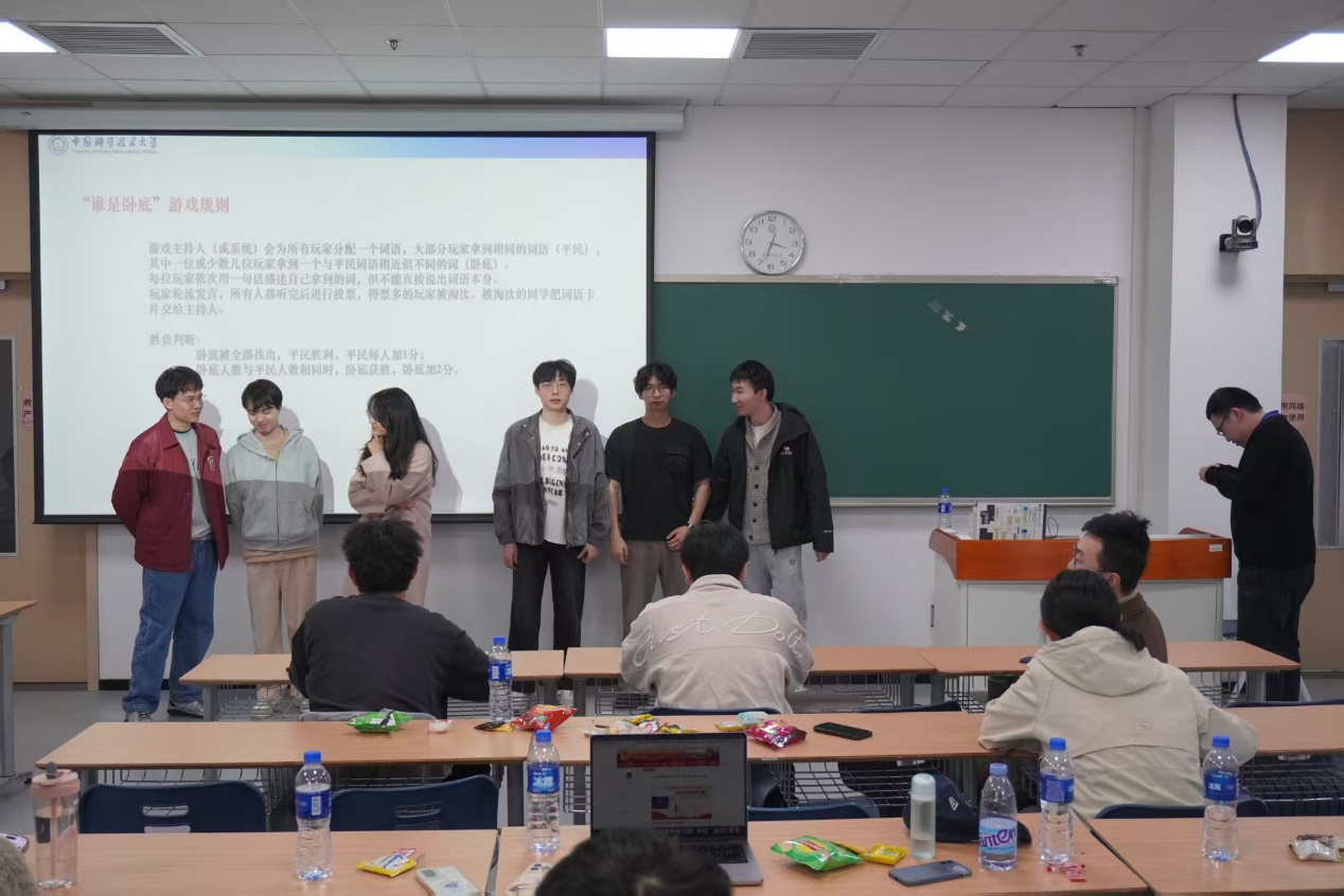 茶歇过后,现场氛围在游戏环节中被迅速点燃。“谁是卧底”、“你说我猜”、“知识竞赛”等趣味项目依次展开,成员们分组竞技、默契配合。欢笑声与掌声此起彼伏,大家在协作中加深了信任,在互动中感受到集体的温暖与活力,充分展现了人工智能与数据科学学院研究生热情洋溢、敢于创新的精神风貌。