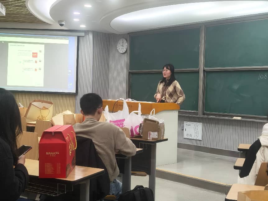班会伊始,“家乡特产盲盒”开场。同学们将各自带来的家乡特产精心装进“盲盒”之中,主动上台的同学随机抽取盲盒,现场品尝并需猜出美食名称,被抽中的同学则需起身详细介绍该款特产。有同学带来了茶叶,当场为大家泡茶品鉴;有同学带来了特色榨菜;还有同学带来了家乡的特色糕点,味道令人赞不绝口。大家在一猜一评间,不仅尝遍了各地风味,更在欢声笑语中加深了对彼此家乡的了解与情谊。