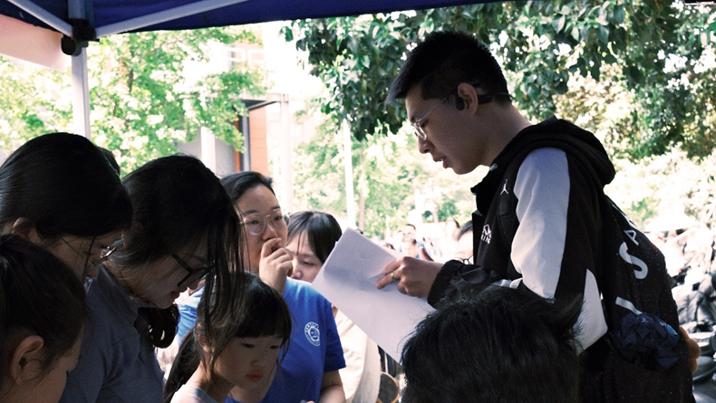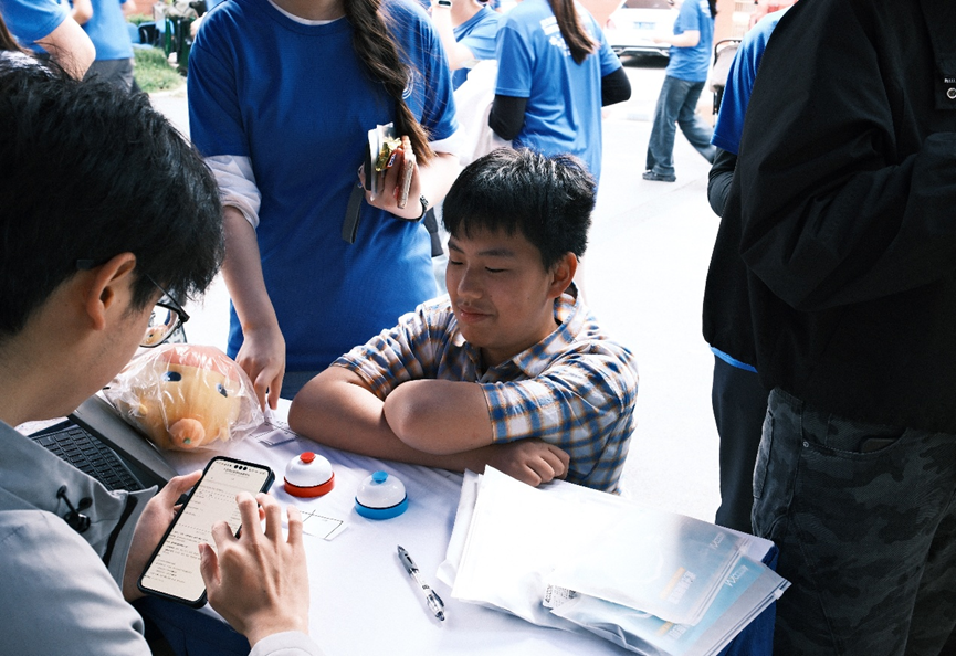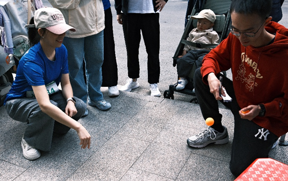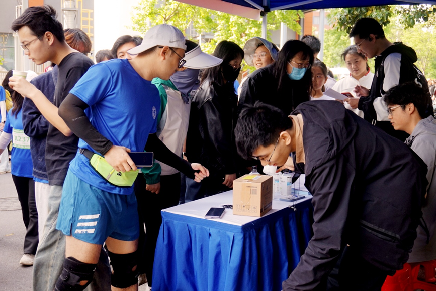 除了为运动员提供必要的补给之外,我院同时开设了“乒乓球投杯”“大数据反应力拍铃”和“五四青年知识问答”三个趣味项目。“乒乓球投杯”考验选手的专注力与手眼协调能力,选手们需要调整呼吸,在短暂的蹲姿中寻找平衡,将乒乓球精准地投入指定区域;“大数据反应力拍铃”兼具趣味与知识性,清脆的铃声伴随着欢笑,展现了大家的青春活力;“五四青年知识问答”环节吸引了众多跑者驻足。在汗水与智慧的交织中,展现了新时代青年“文武兼备”的风采。