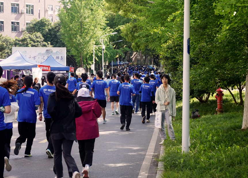 发令枪响,身着蓝色纪念衫的青年学子如奔涌的潮水,瞬间点燃了赛道的活力。本次活动吸引了来自全校各学院的千余名师生参与,他们不仅在赛道上奋力拼搏,更以饱满的热情投入到这一场致敬百年传承的征程中。