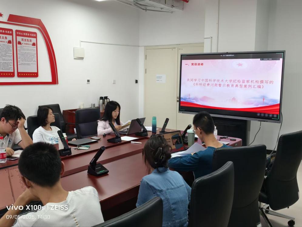 会议第一项议程是全体参加人员在张姚老师的带领下共同学习中国科学技术大学纪检监察机构撰写的《科研经费问题警示教育典型案例汇编》。
