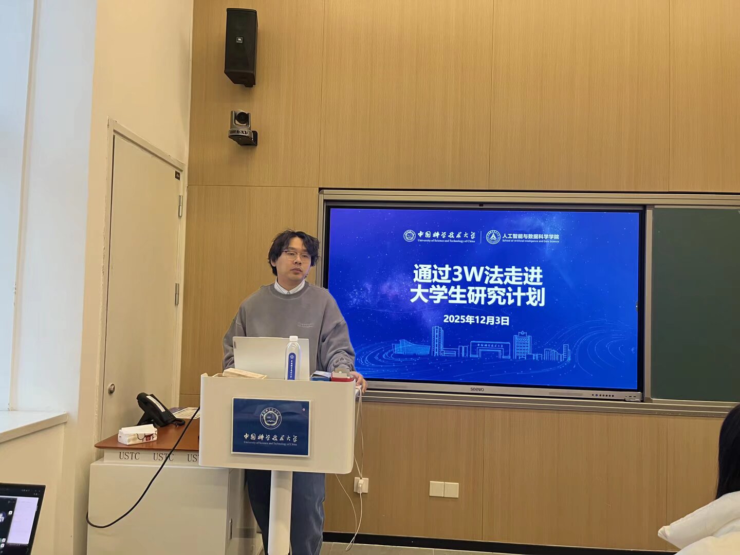 教学秘书徐靖杨老师以“3W法”为主线讲解大学生研究计划,细致地介绍了大研项目的申报与结题路径,并详细解读了相关政策。从项目申报的条件、流程,到结题的要求、标准,徐老师都一一剖析,让同学们对大研项目有了全面而清晰的认识。