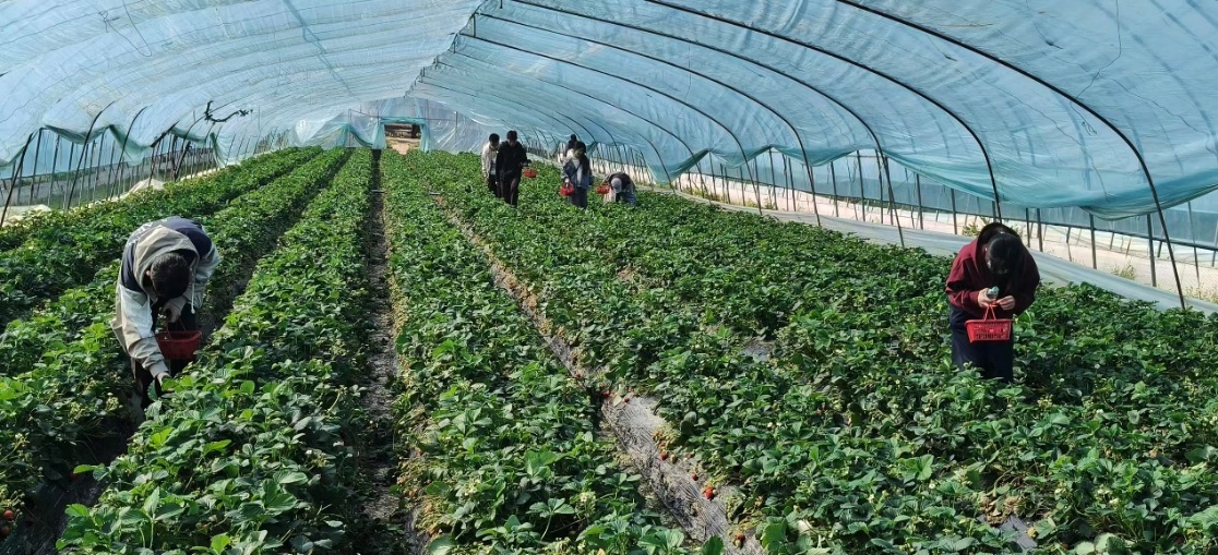 抵达草莓园后,连片的草莓大棚整齐排列,远远便能闻到浓郁的果香。在园主的热情引导与简要讲解后,成员们有序进入大棚,一幅生机勃勃的劳动场景映入眼帘:翠绿的藤蔓层层叠叠,鲜红饱满的草莓点缀其间,像一颗颗红宝石镶嵌在绿叶之中,晶莹剔透、果香四溢,等待着大家的采摘。