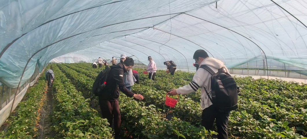 活动当天,阳光和煦,微风拂面,带着春日独有的暖意。参与成员准时在指定地点集合,在学生会主席团的有序组织下,大家统一乘车前往草莓园。车厢内暖意融融,成员们交流着近期的体会与见闻,为接下来的劳动实践鼓足了干劲。