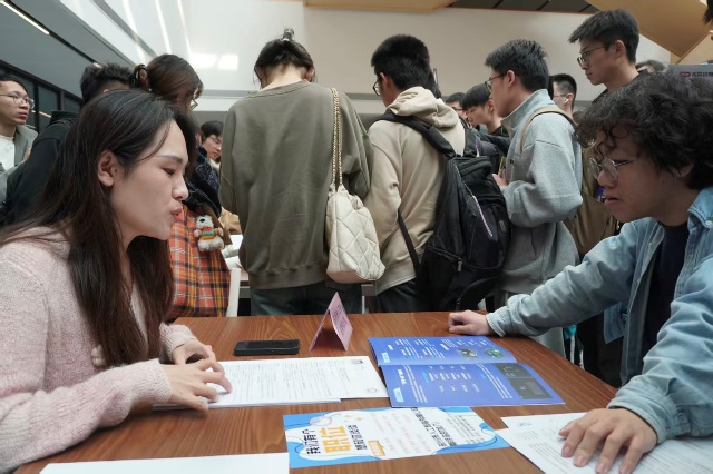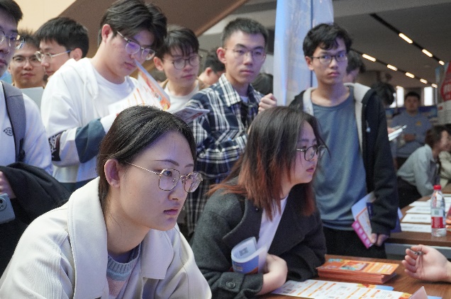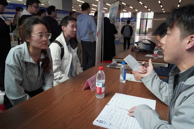 宣讲结束后,招聘对接环节在一号学科楼内同步展开。包括参与宣讲企业在内的多家企业设置展位,与同学们进行面对面交流,详细解答岗位要求、职业发展路径等问题,并现场接收实习简历。活动现场气氛热烈,同学们积极投递简历、咨询岗位信息。