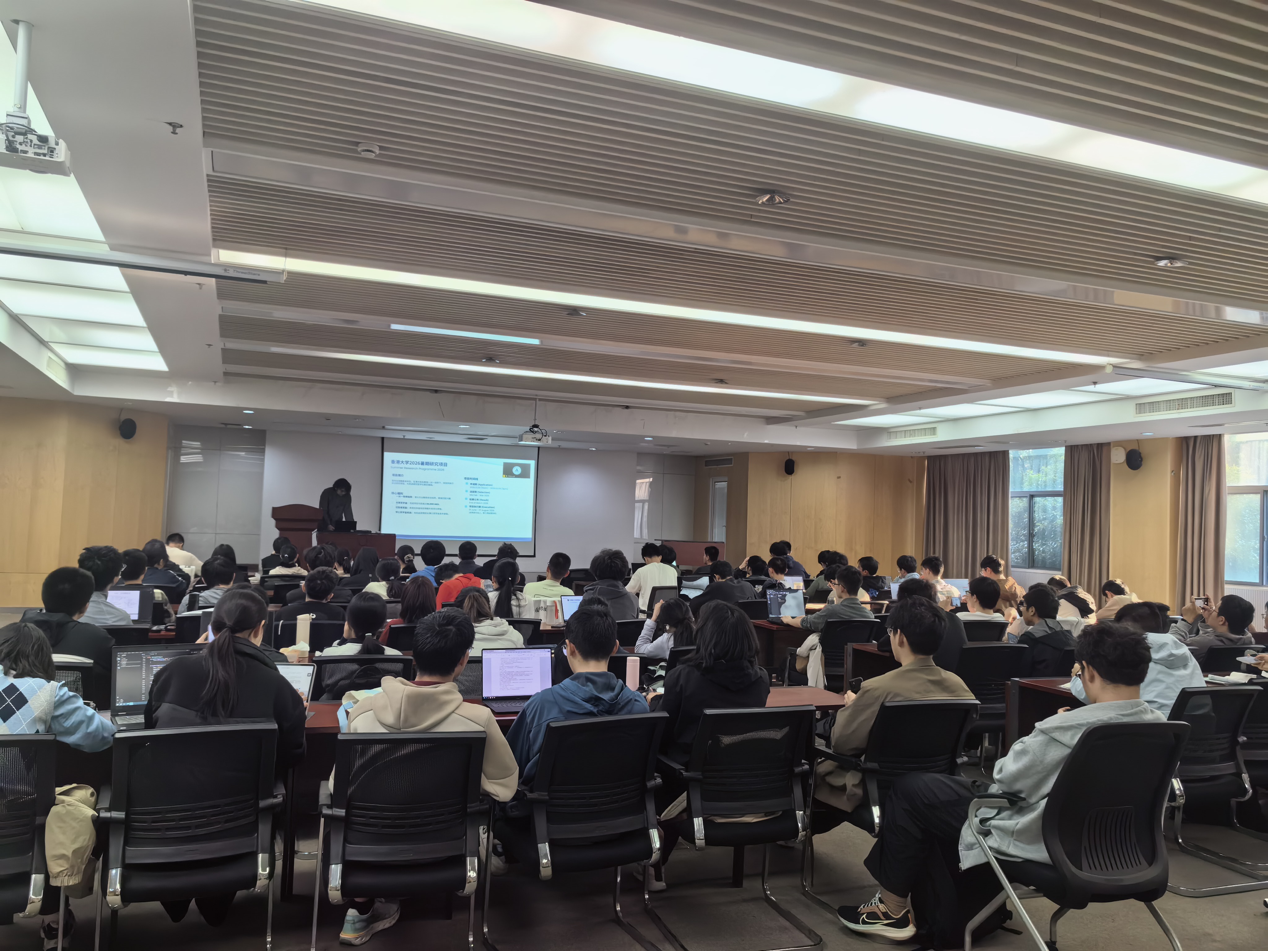 随后,本科教学秘书徐靖杨老师就暑研的申报流程、经费报销细则以及2026年学院重点暑研项目信息作了具体说明,帮助同学们明晰校内手续与支持政策,为规划暑期研究扫清制度障碍。